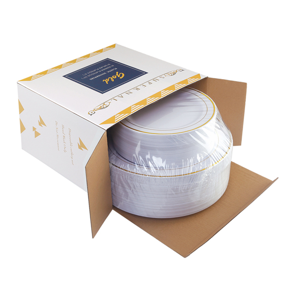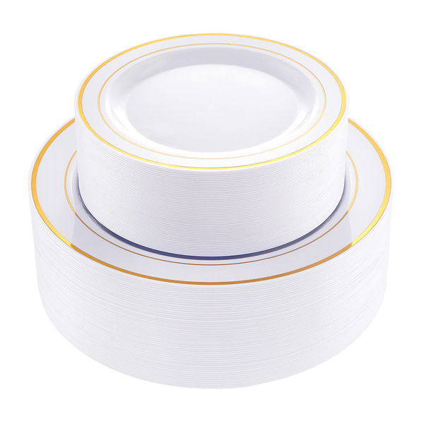 Recyclable and BPA Free: The plastic gold plates are healthy and safety to any kind of food.They are BPA free and PDA approved. We use the 100% pure PS material to the goods.